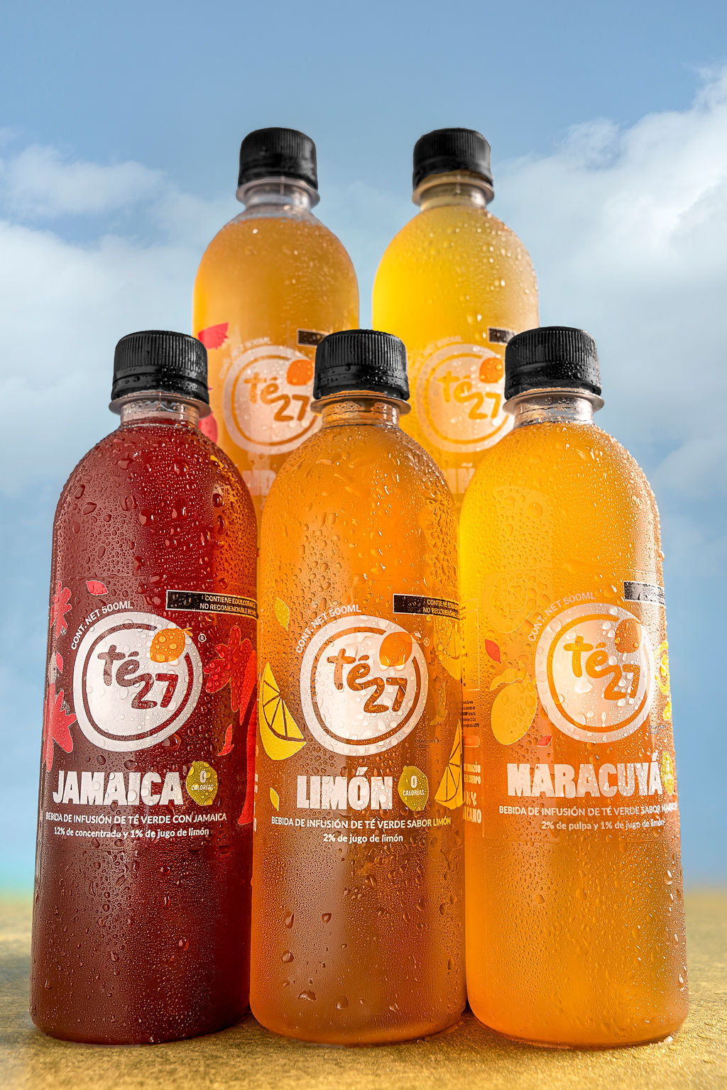 Infusión de té verde y jugo de fruta de origen 100% natural.